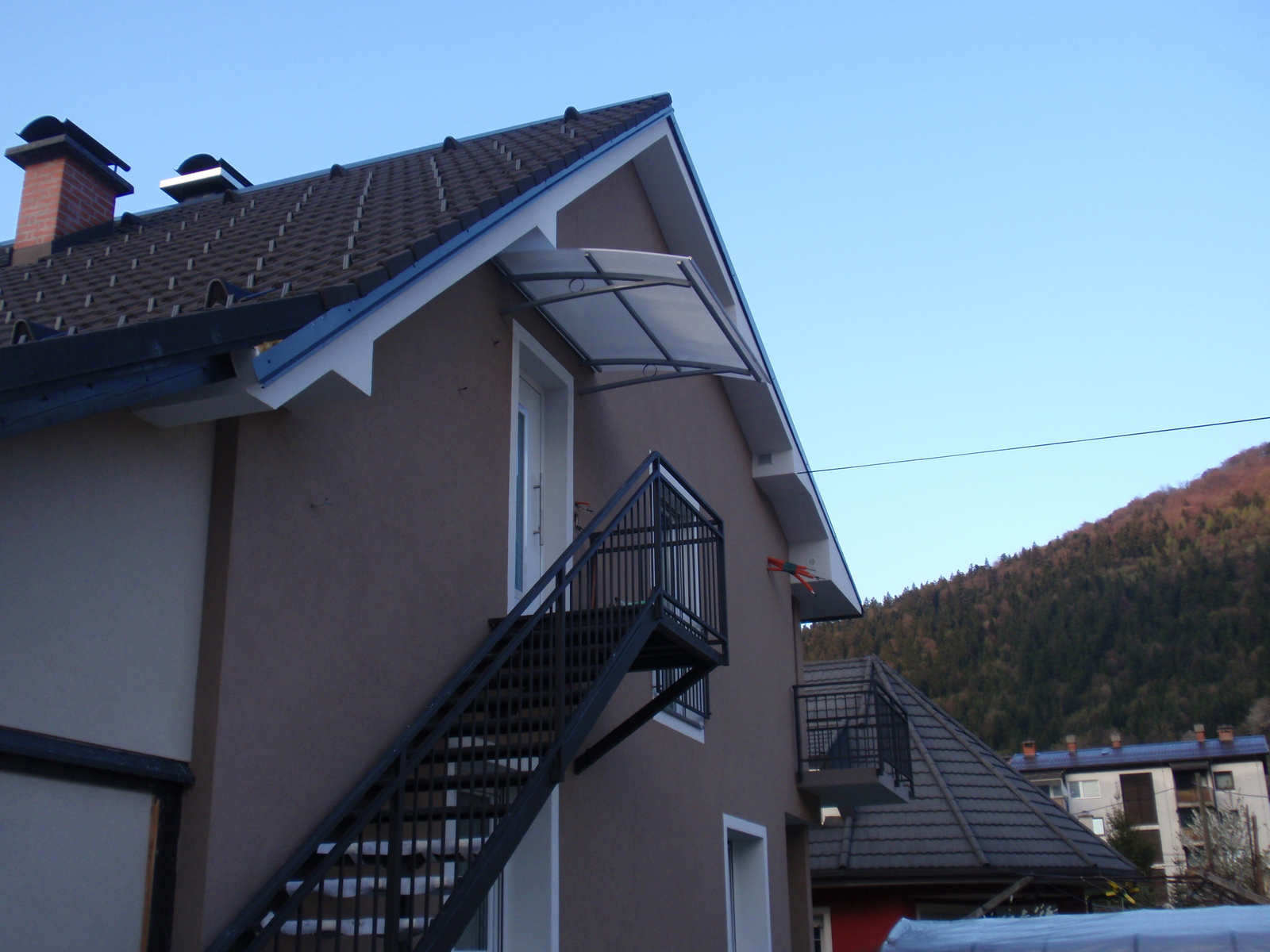 Načrtujemo in izdelujemo nadstreške za terase, balkone, avtomobile iz nerjavečega jekla ali navadenga jekla, ki pa mora biti vroče cinkano in po želji prašno barvano v željeni niansi.